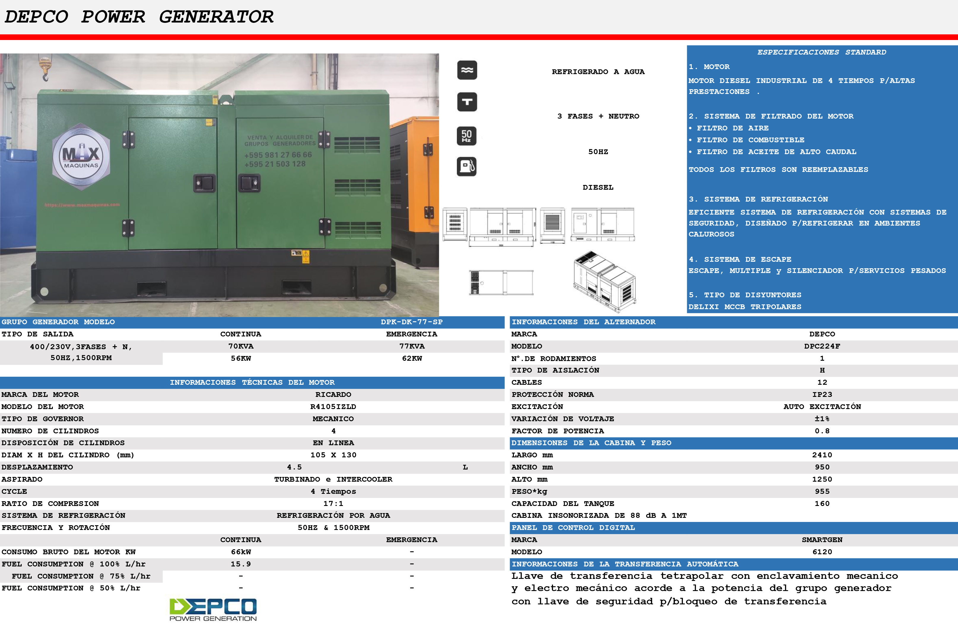 MechanicalSilent 48kw/60kva RICARDO Diesel Generator DK-77-SP
