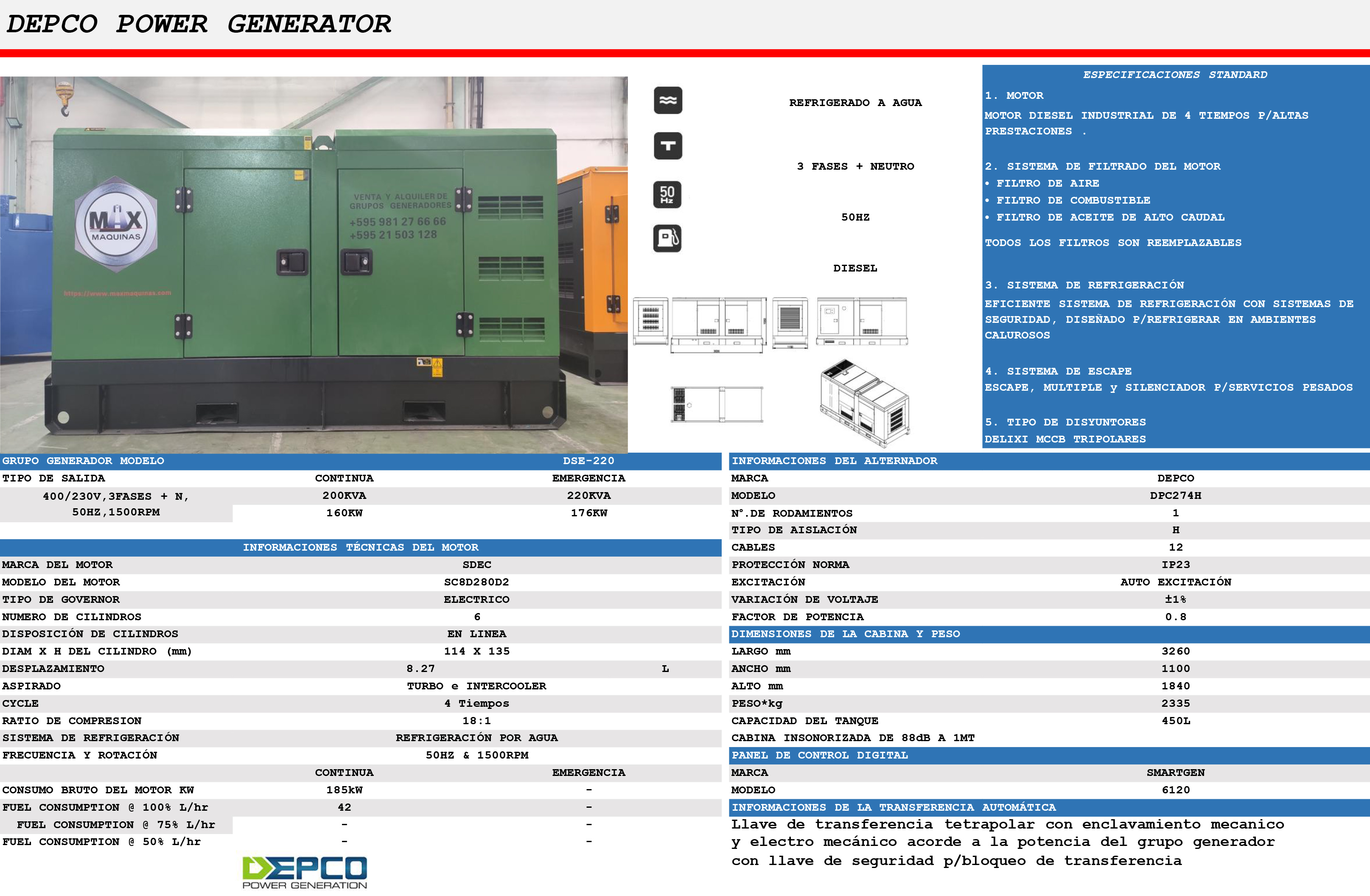 SDEC Ranges 220kVA Diesel Generator